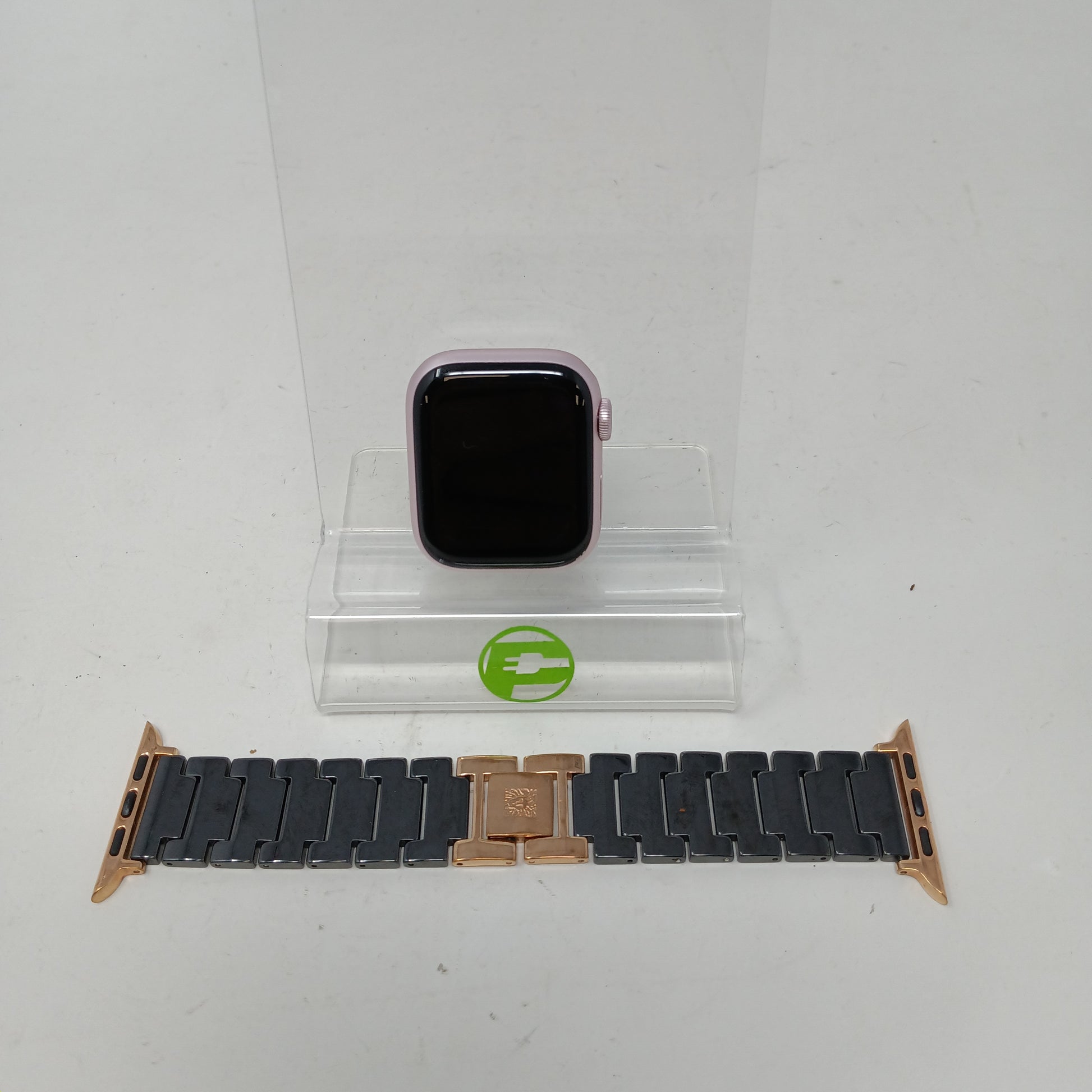 GPS Only Apple Watch Series 9 45MM Pink Aluminum Black Metal Band MR9N3LW/A